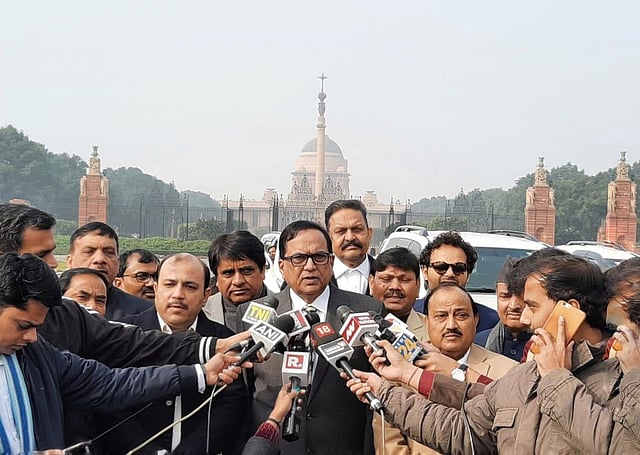 BSP MP Satish Chandra Mishra addresses the media after meeting with President Ram Nath Kovind on Citizenship Amendment Act in New Delhi on Wednesday. (Photo | Shekhar Yadav/EPS)