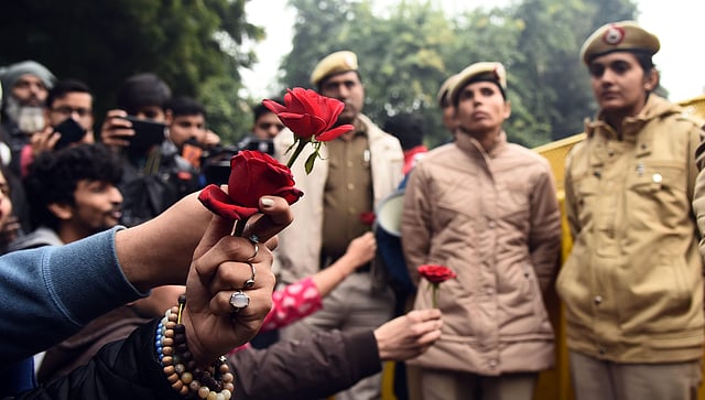 'Dilli police baat karo, aao humare saath chalo': Protesters offer roses to khaki-clad