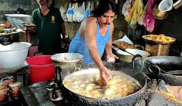 No spatula or ladle: Odisha man dishes out baras from hot oil with his bare hands