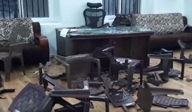 The office of Congress Bhawan in Pune has been vandalized.