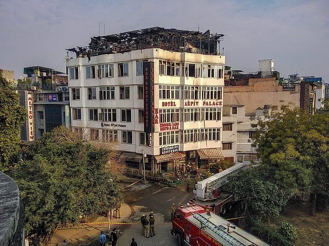 New Delhi Rescue efforts being after a massive fire broke out at a hotel at Karol Bagh area in New Delhi Feb. 12 2019. At least 17 people were killed and several injured after a fire at a hotel. (Photo | PTI)