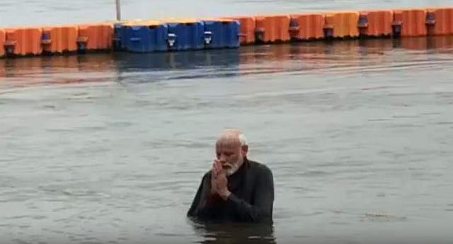 Prime Minister Narendra Modi offered his prayers at the Kumbh Mela and took a dip in the holy river. Have a look.