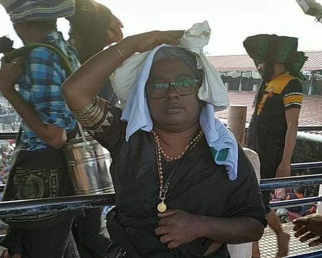 Kerala Dalit Federation leader S P Manju disguised as an elderly woman to enter Sabarimala shrine. (Photo | By special arrangement)