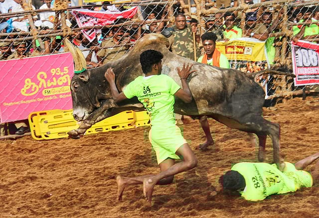 Jallikattu is a bull-taming sport, played during pongal celebrations. The sport typically takes place in Alanganallur, near Madurai. (Photo | K K Sundar/EPS)