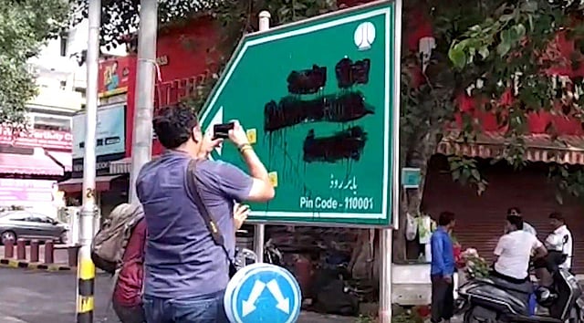 Hindu Sena activists blacken Delhi's Babar Road signboard