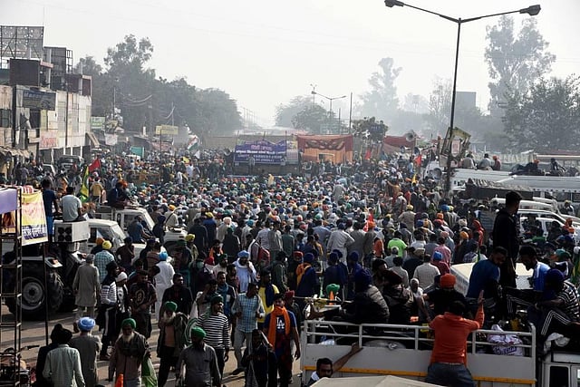 Farmers during their Delhi Chalo protest against new farm laws at Delhi-Haryana Singhu border in New Delhi on Thursday Dec. 3 2020. (Photo | Parveen Negi/EPS)