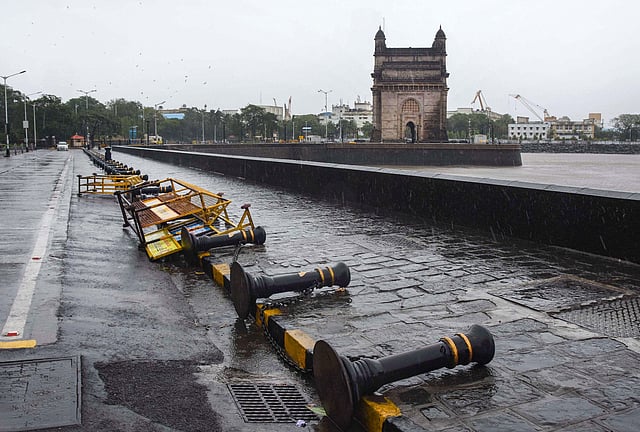 The fallen railings opposite Taj Mahal Hotel after gusty winds during Cyclone Nisarga at Colaba in Mumbai Wednesday June 3 2020. (Photo | PTI)