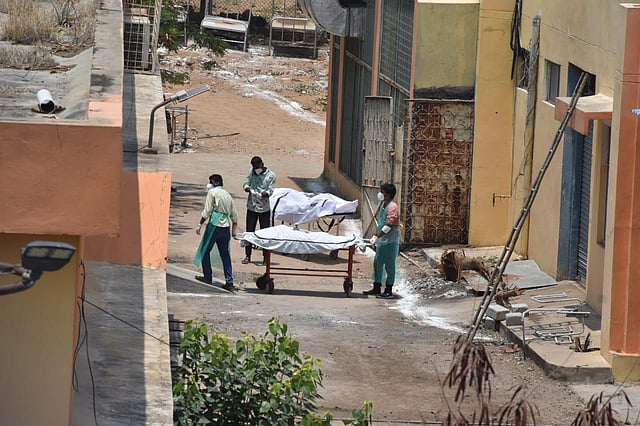 Hospital staff taking bodies of coronavirus victims for cremation in Hyderabad. (Photo S Senbagapandiyan, EPS)