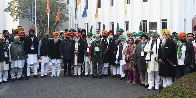 Farmers delegation coming out after the meeting with Union Agricultural minister Narendra singh Tomar at Vigyan bhawan in New Delhi. (Photo| Parveen Negi, EPS)