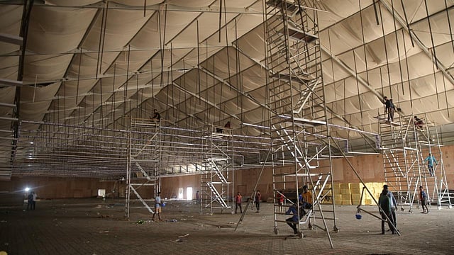 The 44,000 square feet venue getting ready with sound-proofing and insulation material in Mahabalipuram. (Photo | Sunish P Surendran)