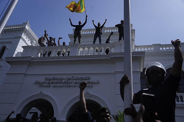 Thousands of anti-government protesters stormed into Sri Lanka PM's office in Flower Road. Men and women breached military defences and entered the premier's office to raise national flags. Sri Lanka declared a state of emergency on July 13 as thousands of people mobbed the PM's office after the country's president flew to the Maldives following months of widespread protests against an economic crisis.