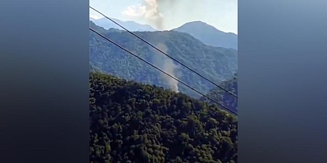 Smoke billows after an advanced light helicopter of the Indian Army crashed at Migging in Upper Siang district of Arunachal Pradesh. (Photo | PTI)