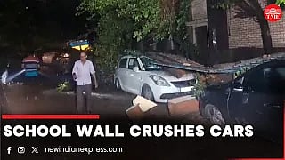 After heavy rainfall lashed national capital on August 11, a wall of a government school collapsed in New Ashok Nagar. As per locals, 5-6 vehicles were damaged after the wall fell on the car.