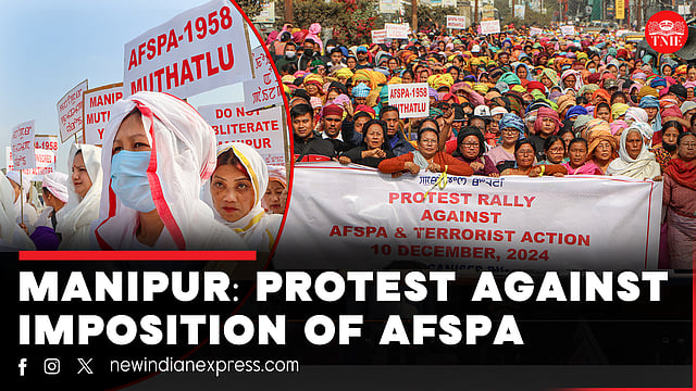 Hundreds of people took part in a rally in Manipur's capital Imphal on December 10 to protest against the reimposition of AFSPA and the killings of six people, including three children, in Jiribam district by suspected Kuki militants last month.