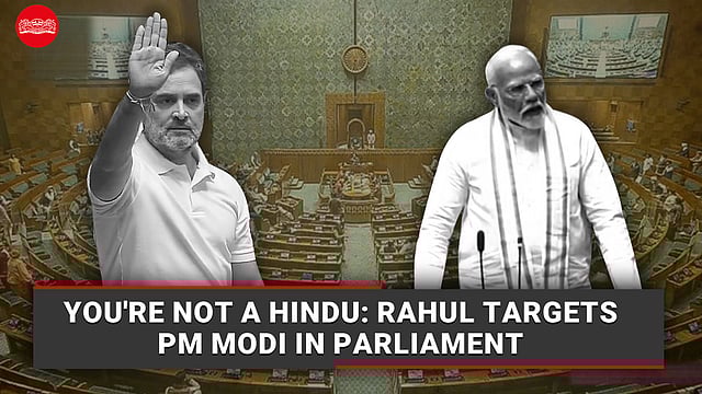 On the Day 6 of the 18th Lok Sabha, the Leader of Opposition in Lok Sabha, Rahul Gandhi, gave a fiery speech on the message of truth, non-violence, and courage that is common to all religions. He also further said PM Modi, the BJP, and the RSS are not to be equated with the majority Hindu community. He claimed, pointing towards the treasury benches, those who call themselves Hindu, spread hatred and violence against minorities of Muslims, Sikhs, Christians across the country today.