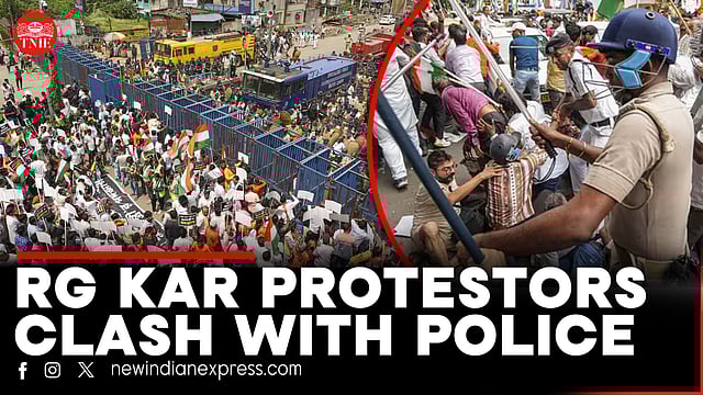 Police baton-charged protestors at the Park Street crossing in central Kolkata during a march to the West Bengal Secretariat Nabanna on Saturday to mark the completion of one year of the brutal rape and murder of an on-duty doctor inside the state-run RG Kar hospital.