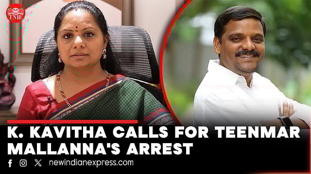 BRS Member of Legislative Council, K. Kavitha, called for the arrest of fellow MLC Teenmar Mallanna after he made derogatory remarks against her. .Follow The New Indian Express channel on WhatsApp Download the TNIE app to stay with us and follow the latest