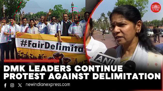 The Dravida Munnetra Kazhagam (DMK) continues to hold protests on the issue of delimitation in the Parliament House premises .Follow The New Indian Express channel on WhatsApp Download the TNIE app to stay with us and follow the latest