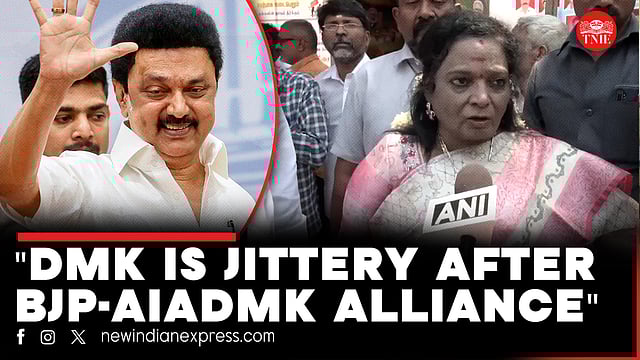 BJP leader Tamilisai Soundararajan pointed out the DMK-Congress alliance when asked questions about the BJP-DMK alliance .Follow The New Indian Express channel on WhatsApp Download the TNIE app to stay with us and follow the latest