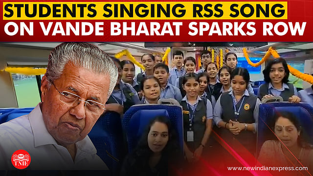 A video of students singing the Rashtriya Swayamsevak Sangh (RSS) Gana Geetham during the inaugural journey of the third Vande Bharat train has sparked a major controversy.
