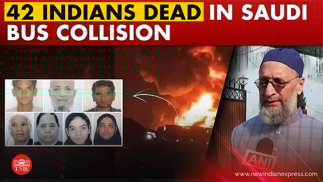 A bus carrying Umrah pilgrims caught fire in Saudi Arabia after colliding with a tanker lorry, killing 42 people, including 20 women and 11 children. Immigration officials in Hyderabad confirmed that all 42 victims were from the city.
