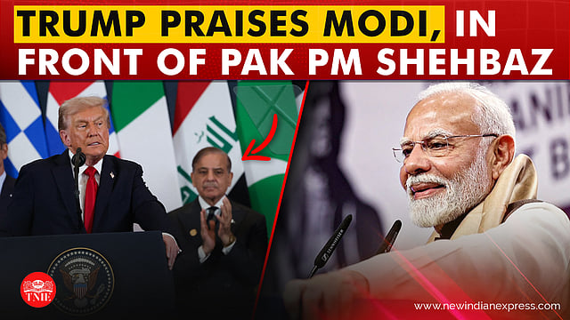 US President Donald Trump on Monday said that Pakistan and India are going to live very nicely together, while looking at Prime Minister Shehbaz Sharif who was standing behind him at the Gaza summit, as he responded with a chuckle.