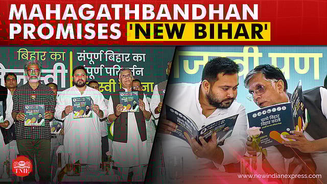 Bihar's INDIA block released its election manifesto titled 'Bihar Ka Tejashwi Pran' on October 28. The grand alliance CM candidate and RJD leader Tejashwi Yadav promised a 'New Bihar' at the launch..Follow The New Indian Express channel on WhatsApp Download the TNIE app to stay with us and follow the latest