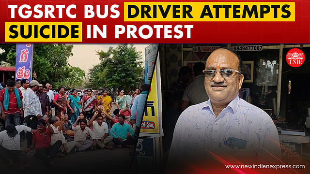 A Telangana state transport employee K Shankar Goud set himself ablaze in a protest by RTC employees outside the Narsampet Bus Depot, demanding CM Revanth Reddy to fulfill his electoral promises. These promises include the merger of the TGSRTC with the government, pay revision, job security, and payment of dues. The 50-year-old TGSRTC bus driver is currently undergoing medical treatment at MGM Hospital, Warangal.