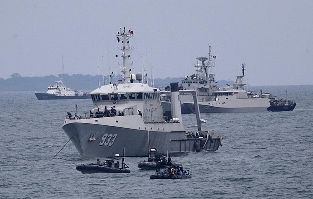 Indonesian Navy ships continue their search for the wreckage of Sriwijaya Air passenger jet that crashed into Java Sea. (Photo | AP)