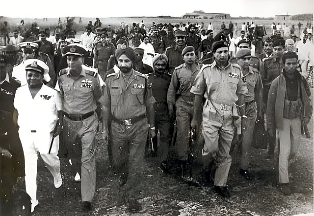 On the same day in Delhi, a painting of the iconic photo of Pakistan Army’s Lieutenant General AAK Niazi surrendering to India's Lieutenant General Jagjit Singh Aurora was unveiled by the chief of army staff (COAS) at the Maneckshaw Centre, named so after the hero of the 1971 victory, Field Marshal Sam Maneckshaw.