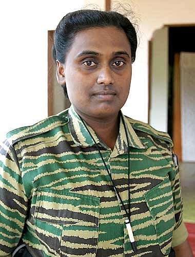 An excellent speaker and motivator with a commanding physical presence, Thamilini came from a poor agricultural family of Paranthan in the Northern Province. Though a bright student she had to quit studies at the high school level because of the disruptions wrought by war. She joined the LTTE, and over a period of 18 years, rose to head its women’s political wing.