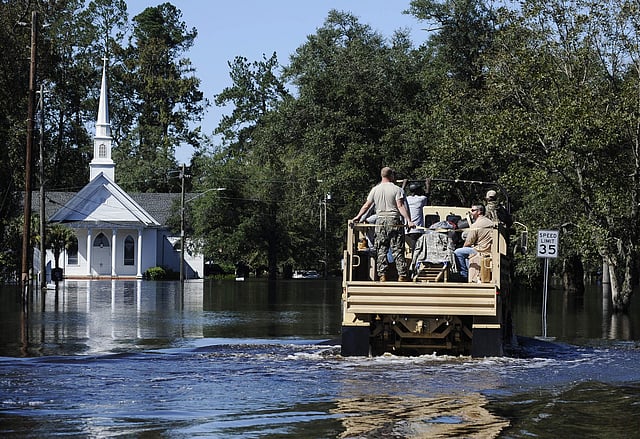 Thousands of people were ordered to evacuate, and officials warned that some communities could be cut off by washed out roads or bridge closures. In the city of Greenville, military trucks rumbled through leafy neighborhoods where orange traffic cones and police tape discouraged people from entering. Police were stationed at the edge of the evacuation zone to monitor who came and went.