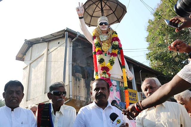 The solemn function organised at the “MGR” statue by Suntharalingam, an associate of MGR’s from the time the actor-politician was shot at and injured by fellow actor and political rival M.R.Radha in 1967.