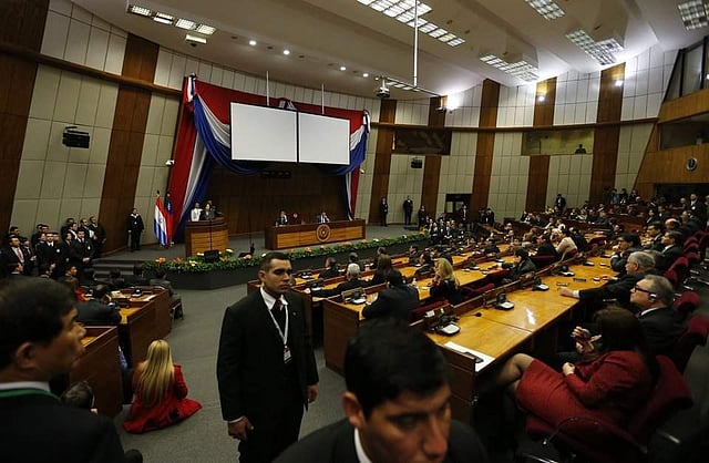 Female legislators from opposing camps had their hands on each other's throats as a dozen colleagues pushed and shouted trying to separate them in the main chamber during a review of the budget for a major infrastructure project.