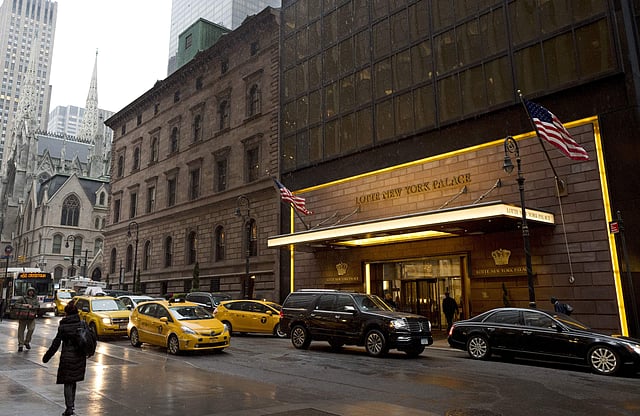 Traffic passes St. Patrick's Cathedral, left, and the Lotte New York Palace Hotel, in New York. (File Photo | AP)