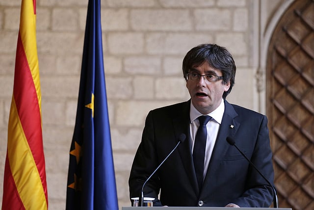 Conspicuously absent though was the region's deposed leader Carles Puigdemont and four of his former ministers, who travelled to Belgium after the central government imposed direct rule on Catalonia on Friday as the regional parliament declared independence.