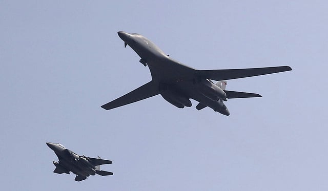 Flights by supersonic B-1B Lancer bombers in the area always infuriate North Korea, which condemned the drill as "blackmail" early Friday.