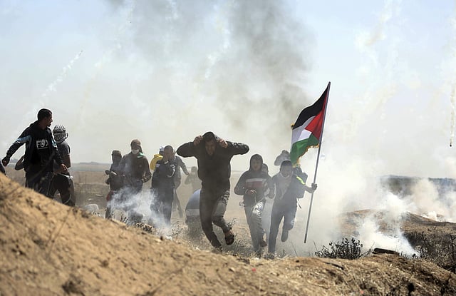 Some Palestinians burned mounds of tyres and threw stones at Israeli soldiers over the border fence, who responded with tear gas and live fire.