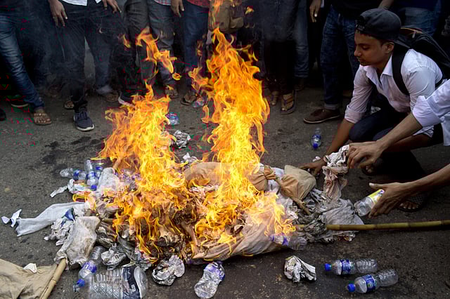 Authorities say more than 300 vehicles have been vandalised since the protests started. Anger erupted after one of two buses racing for passengers killed a boy and a girl waiting at the roadside on Sunday. Asaduzzaman Khan on Wednesday promised that the government would launch a public transport safety campaign.