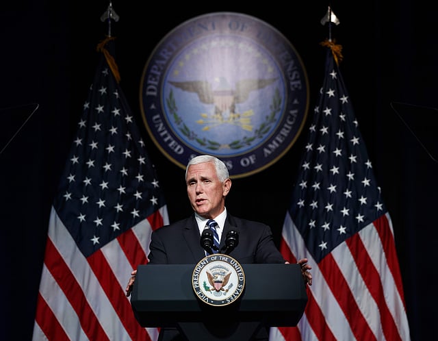 Pence portrayed the change as a response to foes' potential aggression rather than any offensive U.S. military effort.