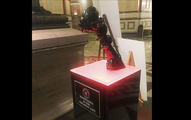 The Chicago chapter of the Temple of Satan has erected a "four-foot sculpture depicting a snake curled around an outstretched arm holding an apple" and has placed it in the Illinois statehouse rotunda, BBC reports.
