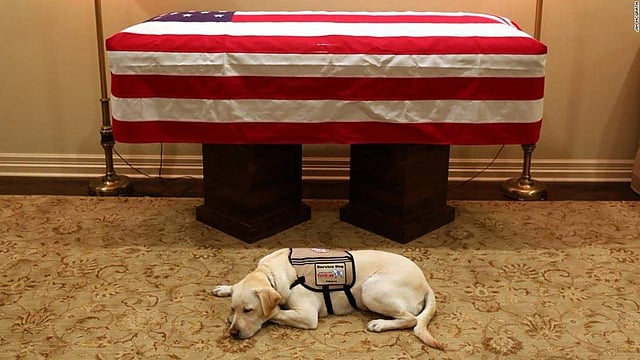 George HW Bush's service dog, a labrador paid his last respects to the 41st president of US. HW Bush's memorial service was attended by dignitaries from around the world, including his service dog, Sully.