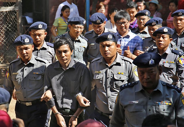 Wa Lone and Kyaw Soe Oo, who were working on an investigative report on the violence in Myanmar's Rakhine state, were arrested by the Yangon Police on December 12 last year.