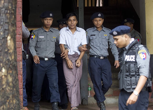 The two say they were framed by police, apparently because of their reporting on the brutal crackdown by security forces on minority Rohingya Muslims in Myanmar's Rakhine state.