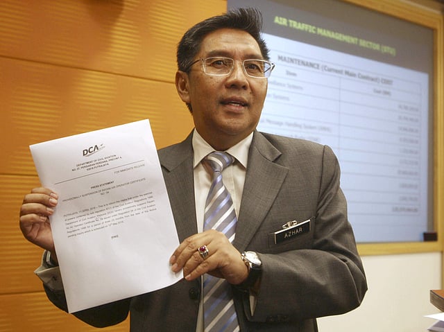 Azharuddin Abdul Rahman said the report didn't blame the civil aviation department for the plane's loss but found that the Kuala Lumpur air traffic control center failed to comply with operating procedures.