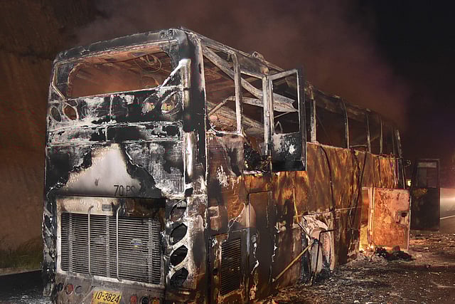 It was not immediately clear how the blaze started on the bus -- one of four travelling together to the Thai capital. But television footage showed a bus destroyed by fire which trapped many passengers inside.