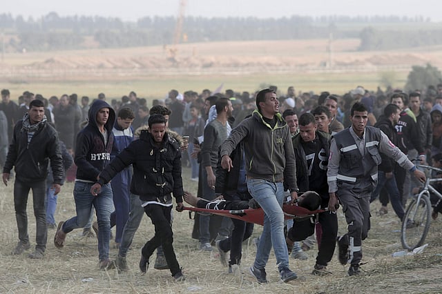 The mass marches were led by Gaza's ruling Hamas group and touted as the launch of a six-week-long protest campaign. Palestinian health officials said 15 Palestinians were killed by Israeli fire and more than 750 hit by live rounds, making it the bloodiest day in Gaza since the 2014 cross-border war between Israel and Hamas.