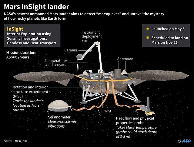 The high drama of the entry, descent and landing phase begins at 11:47 am (1940 GMT) at NASA's Jet Propulsion Laboratory in Pasadena, California, home to mission control for Mars Insight.