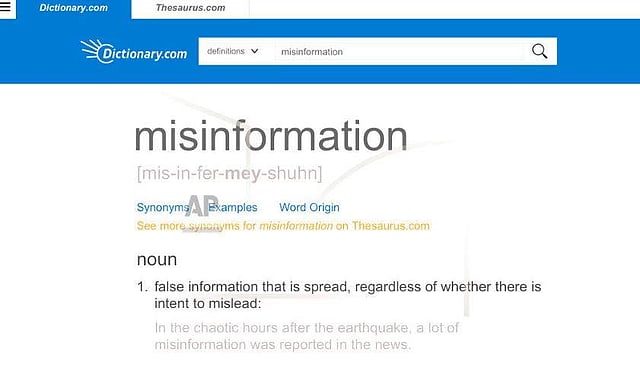 NEW YORK: Misinformation, as opposed to disinformation, was chosen Monday as Dictionary.com's word of the year on the tattered coattails of "toxic," picked earlier this month for the same honor by Oxford Dictionaries in these tumultuous times.