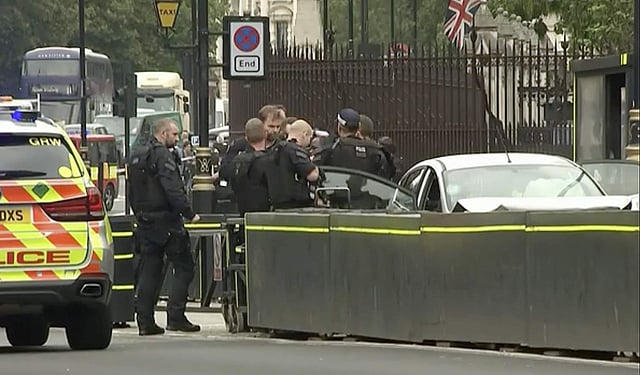 The gates of the Houses of Parliament in the heart of London were being protected by unarmed officers at the time.